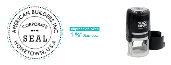 Premium quality self-inking stamps are the perfect for Corporate seal stamps. High quantity applications, offering thousands of trouble-free impressions between inking's. Fast Service. Imprint area is 1 5/8" in diameter
